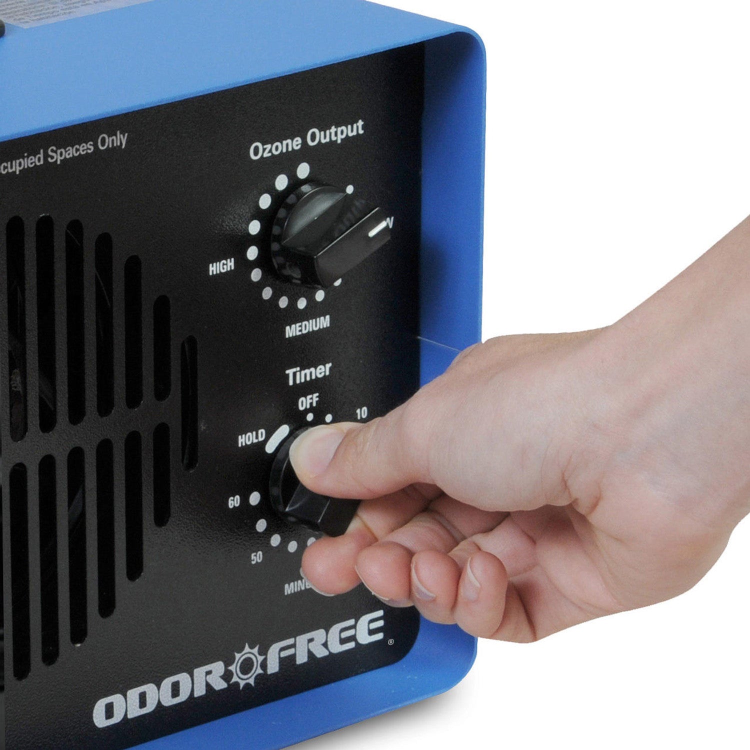 The typical automobile or hotel room with light to moderate odors can normally be treated in 15-30 minutes. For larger spaces and longer treatment times, an Odor Free model with a 12-Hour Timer is more convenient.